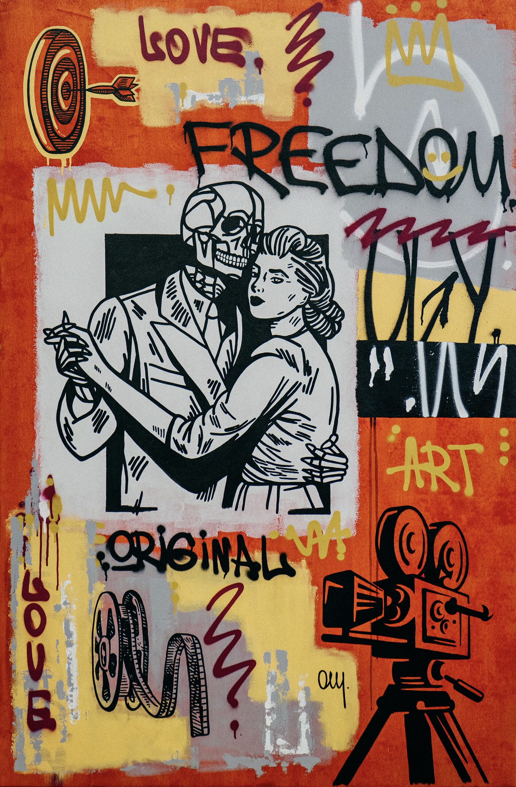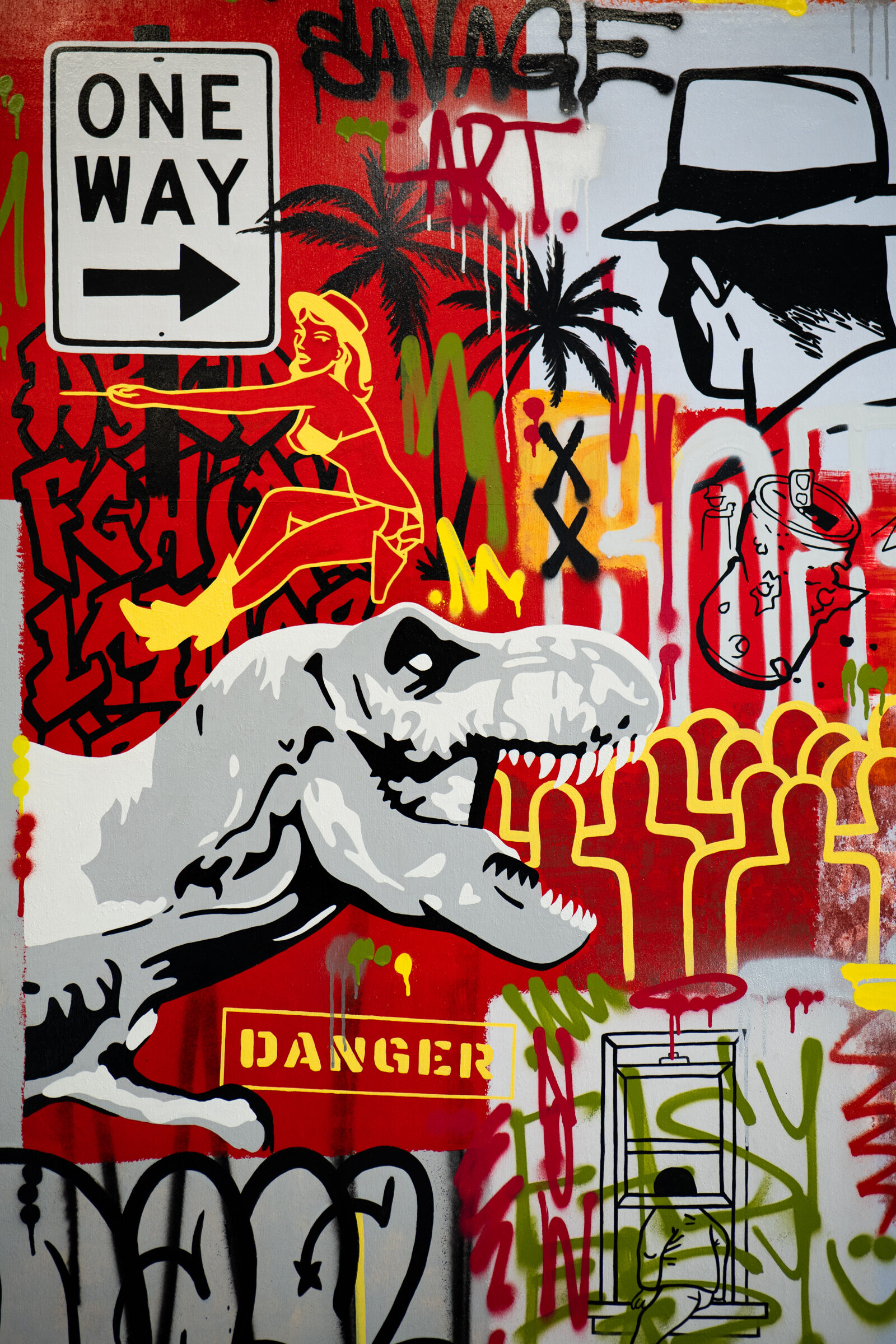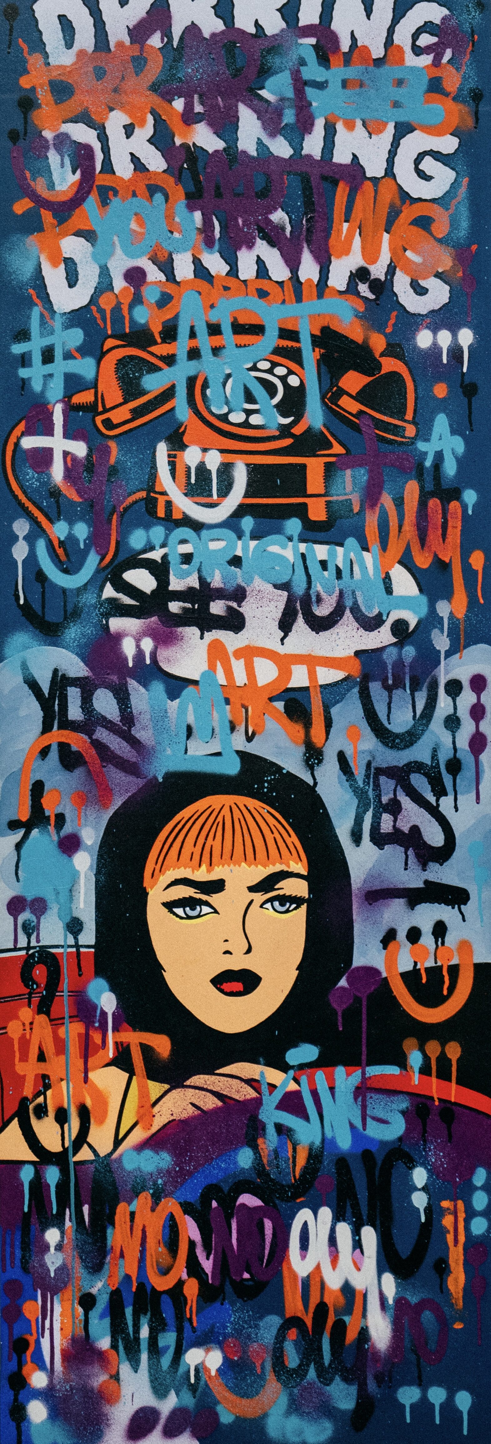 Картина выполнена акрилом и аэрозольными красками на фанере, покрыта защитным лаком.